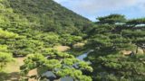 栗林公園は、江戸時代初期に作られた、池泉回遊式庭園です。公園内を一周するのに、およそ1時間かかる程広大な庭園ですが、背後の紫雲山を借景として取り込んでおり、より広く感じます。上の写真は、富士山に見立てた山で、園内を見渡すことができる場所です。栗林公園は、高松では人気の観光地ですから、ゆっくりと楽しむには、早朝が良いでしょう。栗林公園が開く時間は、日の出・日の入りに合わせて、変化しています。夏では、朝6時ごろが、人が少なくて涼しいので、おすすめです。