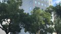 外周の鉄骨ブレースが特徴のオフィスビル。水平荷重を外周のブレースが負担しているため、内部の柱は鉛直荷重のみを負担している。そのためロングスパンを利用した、広い無柱空間の執務室を実現している。
