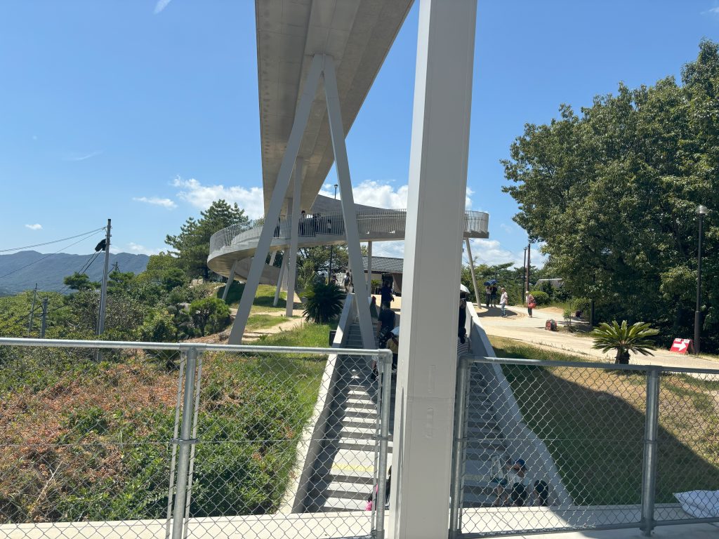 上の写真のように、大きく回りながら展望台へと上がる階段があります。また反対側には、階段とエレベーターがあります。