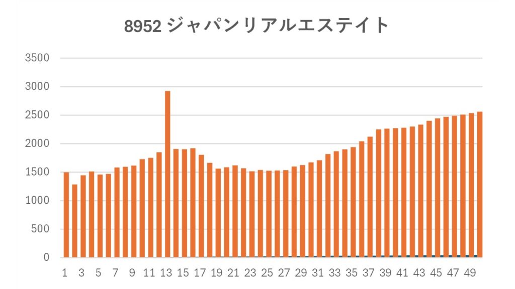 【J-REIT】ジャパンリアルエステイトリートの分配金の推移 2025.12.272026.01.08 2002年~2026年の分配金の推移(2026年は予想) ※2025年12月時点 ※第25・47期に投資口分割があります。このグラフは、現在の投資口ベースで分配金を再計算したものです。 参考:ジャパンリアルエステイトHP